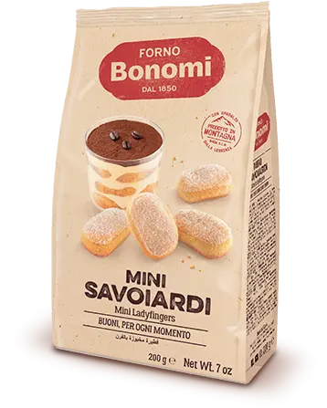 Die Mini Savoiardi Classici sind feinste italienische Löffelbiskuits – perfekt für Tiramisu, Desserts oder als knuspriger Snack.